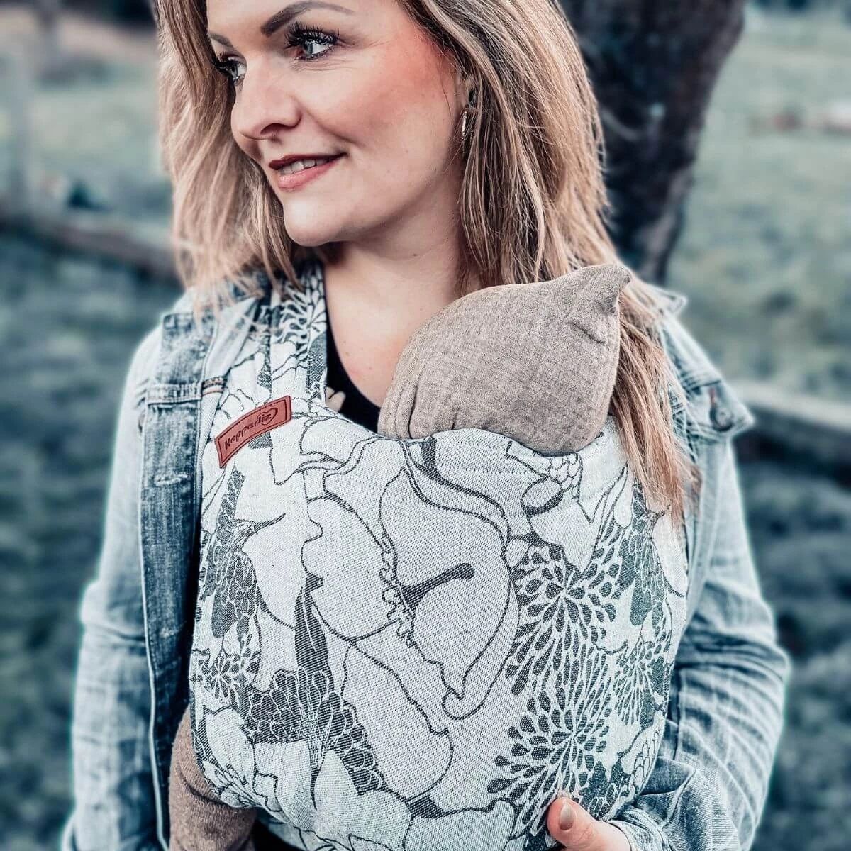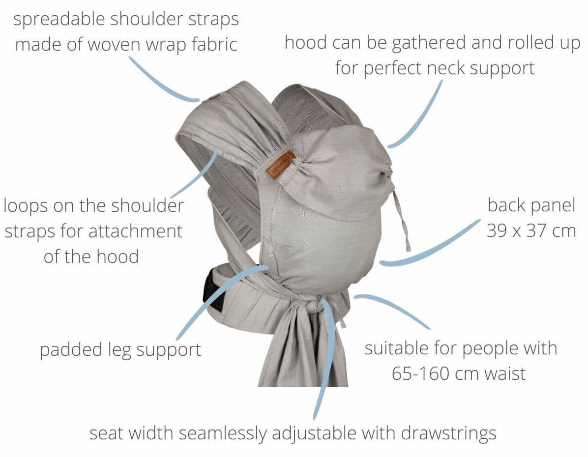 Door de uitwaaierende schouderbanden verdeelt deze halfbuckle baby draagzak het gewicht perfect! Hij is door de fijne tailleband ook geschikt voor de wat smallere ouders.