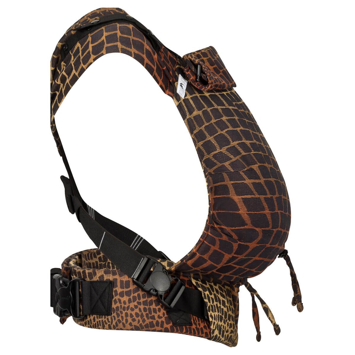 De speciale gespen van de schouderbanden zijn op de perfecte plek op de tailleband vastgezet. Deze specifieke plaats biedt diverse voordelen: