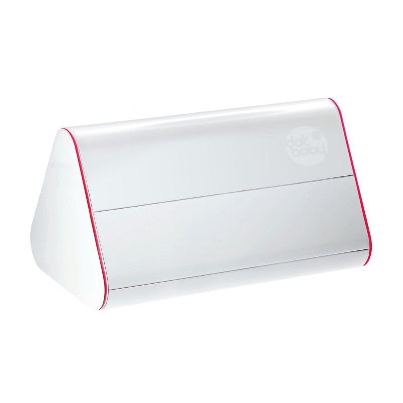 Switchen tussen de 2 compartimenten doe je door de box om te rollen. Dat kan met 1 hand, want de dot.box heeft de vorm van een driehoek met afgeronde hoeken en een rand in antislip.