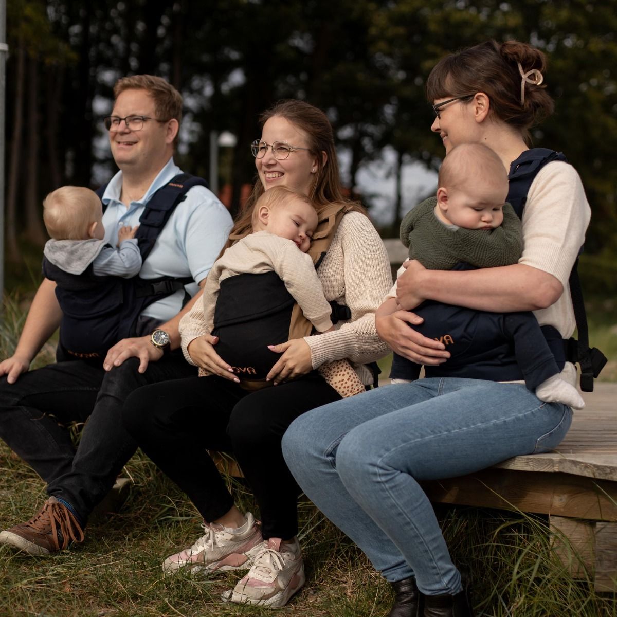 Een Moova draagzak kan je zowel op de buik (tegen je aan), heup als rug dragen. Dit kan op een ergonomisch verantwoorde manier vanaf de geboorte tot maat 86.