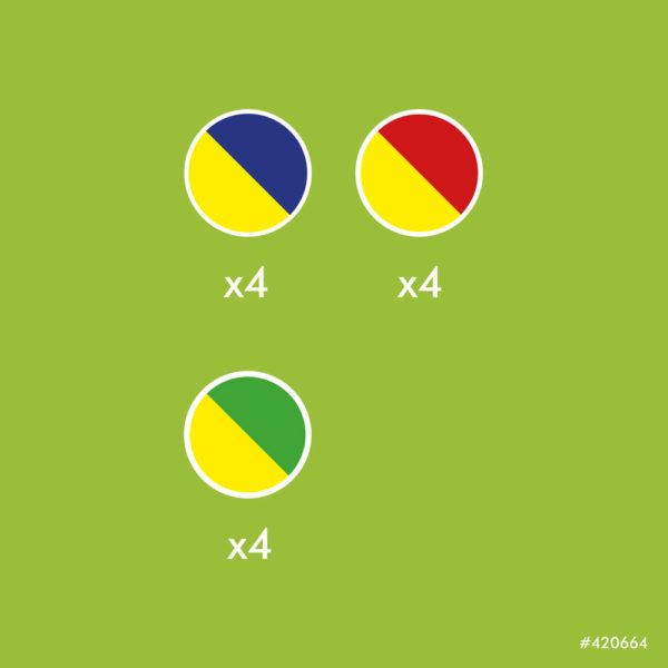 Deze knikkers hebben de perfecte grootte en gewicht voor maximale prestaties. In de kleuren rood/geel, blauw/geel en groen/geel. Elke knikker heeft een diameter van 24.5 mm.