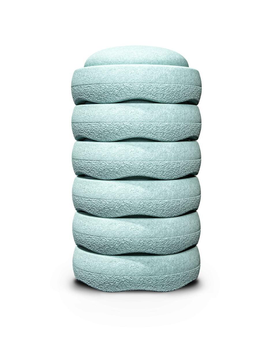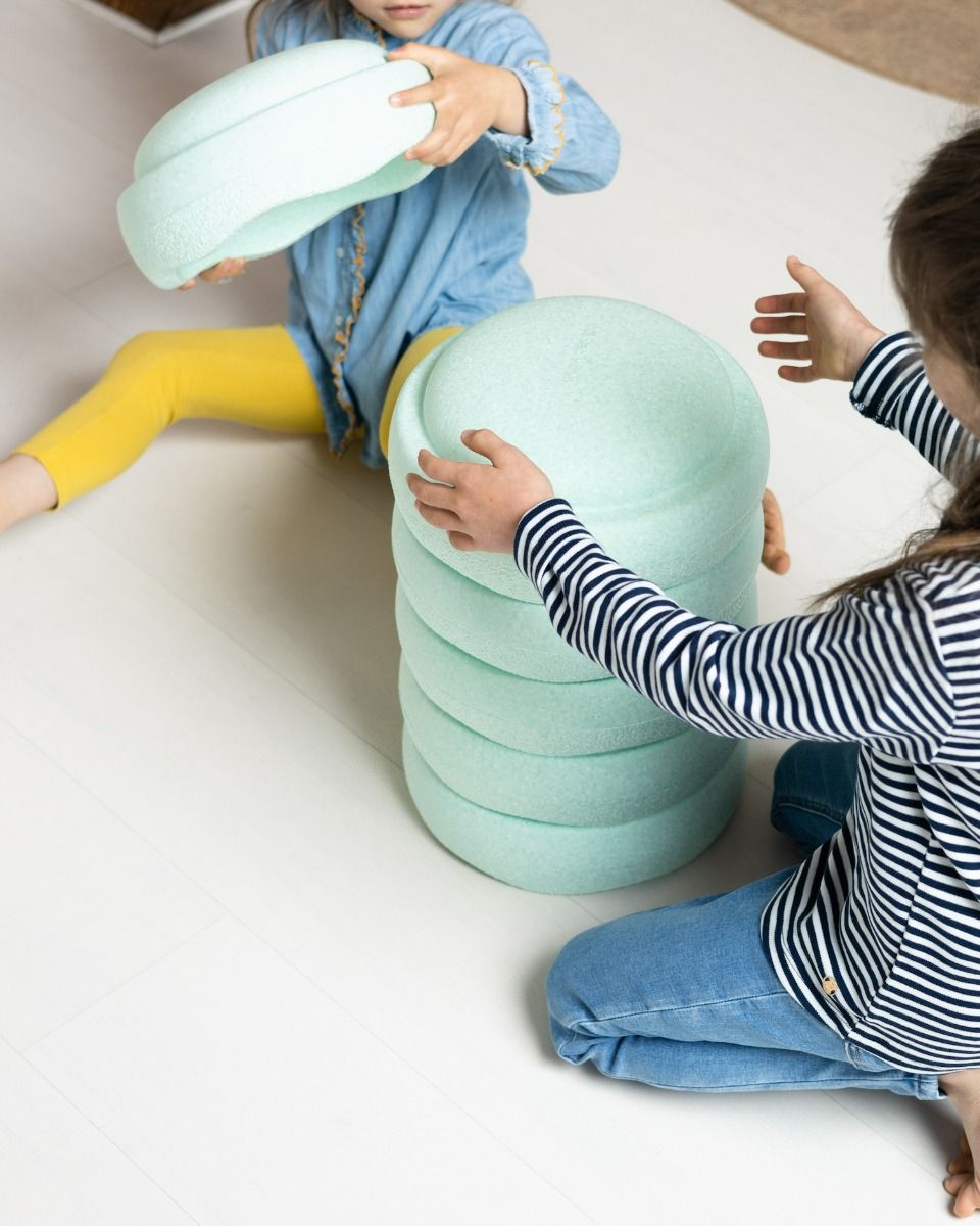- 6x Stapelstein in de kleur mint: (kan gecombineerd worden met alle andere stapelstenen en Balance Board )