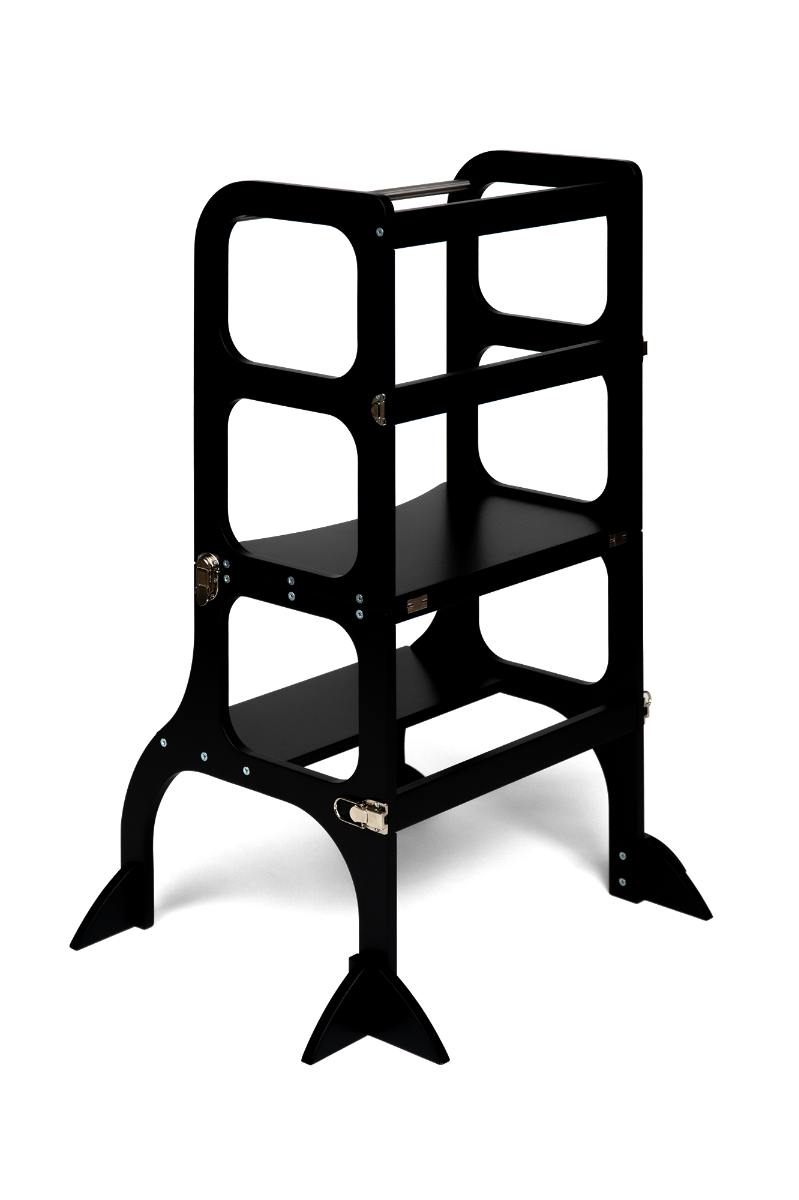 De leertoren is ontworpen gebaseerd op het basis principe van de Montessori pedagogiek voor het ontwikkelen van een kind zijn zelfstandigheid en onafhankelijkheid in dagelijkse taken. De leertoren neemt niet veel plek in beslag en combineert twee onmisbare kinder meubelstukken in één - een stoel en leertoren.