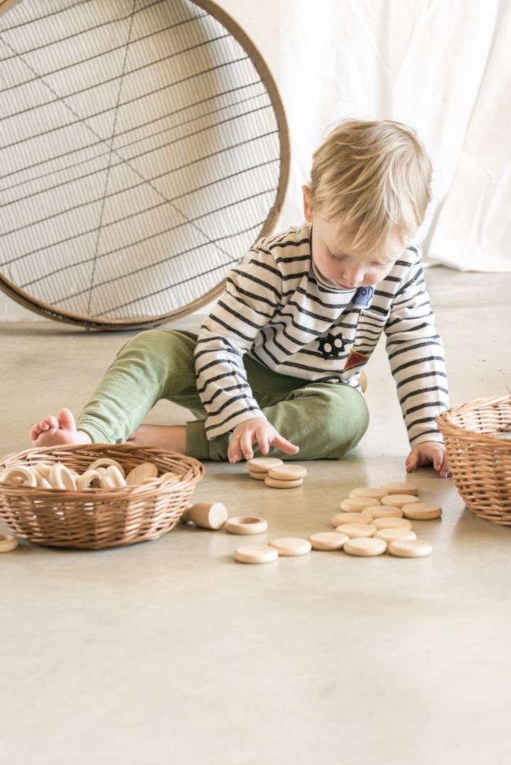 Deze set van 6 Nins, 36 ringen en 18 munten van het Spaanse houten speelgoedmerk Grapat zijn leuk te combineren met de rest van het houten speelgoed assortiment. Met deze set kan je kindje zelf een verhaal maken en ze gebruiken in zijn/haar fantasierijke spel.