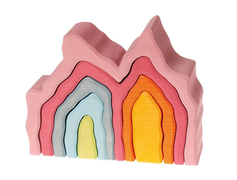 Ze halen hun inspiratie uit onder andere het Waldorf onderwijs (Vrije School) en het Montessori principe. Open ended play speelt hier in een hele belangrijke rol, de fantasie van het kind zijn gang laten gaan. Grimm's maakt houten speelgoed in minimalistische vormen met prachtige kleuren en een uitnodigende feel, voor alle leeftijden - speelgoed wat je inspireert om te spelen, keer op keer.